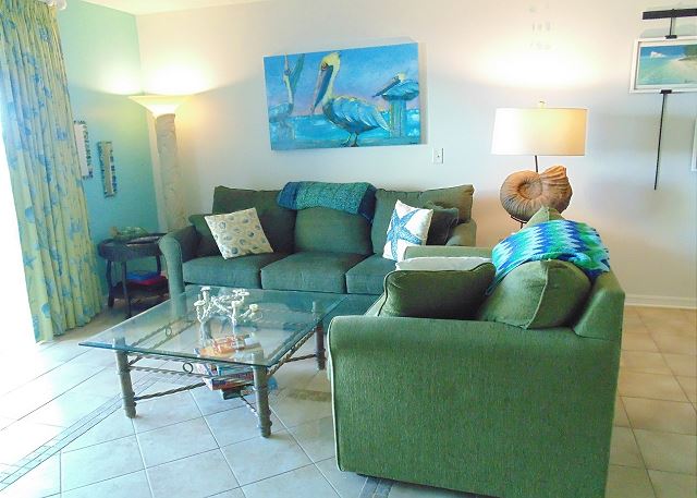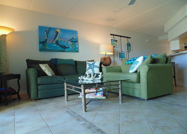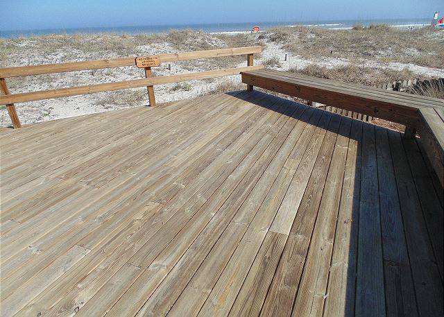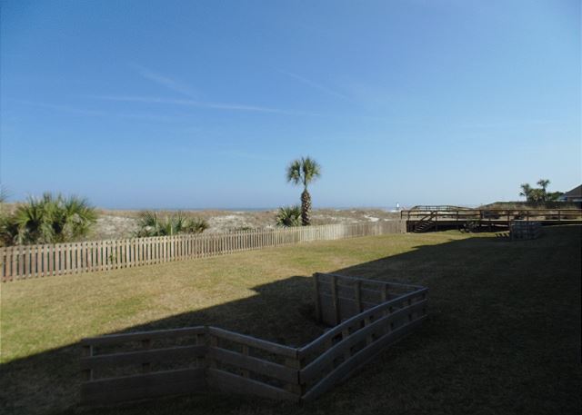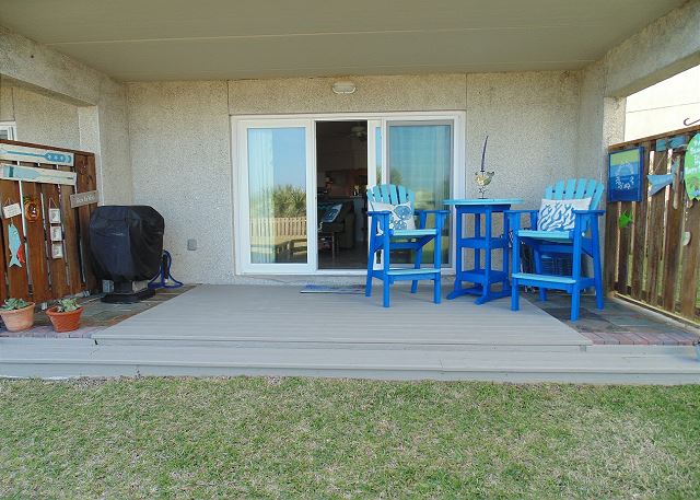 Overlooking the dunes in Jacksonville Beach. Private one bedroom one bath ground floor end unit in oceanfront community features private deck just steps to the beach. Spacious living room and kitchen with breakfast bar. Tile floor throughout. Freshly painted. Two assigned parking spaces. TWO WEEK MINIMUM (14 NIGHTS) While this unit is oceanfront, it doe not have views from deck, but the private beach access is just steps away from the patio. Private gated community in quiet residential area of Jacksonville Beach.